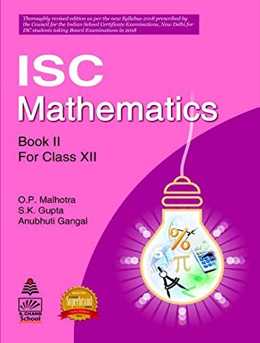 Book This edition of ISC Mathematics Book II for Class XII has been thoroughly revised in the light of the new syllabus 2018 prescribed by the Council for the Indian School Certificate Examinations, New Delhi. Salient Features Written in a simple and easy-to-understand language Ample number of solved examples for better understanding of the topics discussed Exercises and hints for selected questions to reinforce the students' understanding 'Chapter Summary' for quick revision 'Chapter Test' at the end of each chapter for self-evaluation Questions of previous ISC and engineering examinations Appendix containing useful information and logarithms tables