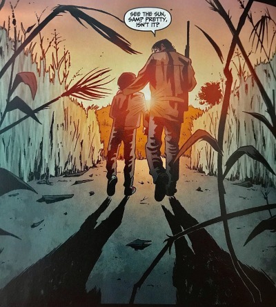 And Sam's character just didn't jive with his true character. I know he is only eight in this and in following canon had to remain ignorant of the whole Supernatural world. Yes, I'm glad they didn't make him aware yet, because then I would complain about that (these poor writers can't win), but, it also seemed unlikely after going through all this that with his perpetually curious mind he wasn't questioning anything or putting two and two together. He just kinda went along with every lame explanation John and Dean told him about really bad "people". That just didn't feel like true Sam to me. Perhaps I'd buy it if the excuses weren't so awful. Though in fairness, I'm not sure what the writers could have done better with only little dialogue bubbles to work with.