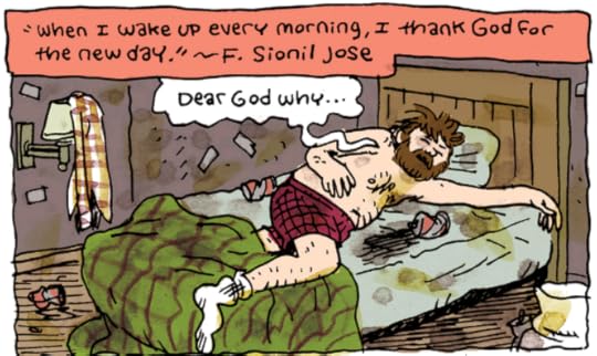 I am a fan of Noah Van Sciver’s work, discovered a few years ago through his great books. A kind of alt style I associate with Jeffrey Brown’s work. Deliberately sketchy comix style going back to Crumb and others. And this guy knows how to write dysfunction males, let me tell ya. (I know, maybe you know enough of these in Real Life. . .). Sometimes the stories are sorta sad and moving, as in Saint Cole and Youth is Wasted; often he is self-deprecating as in My Hot Teen Date, but in Fante Bukowski he is hilariously satirizing self-important writers with no talent who drink themselves into a sense of false empowerment. The first volume of Fante Bukowksi was one of my fave comics of 2015, so I have been anxiously anticipating this second volume. And it does not disappoint, my friends, it does not.