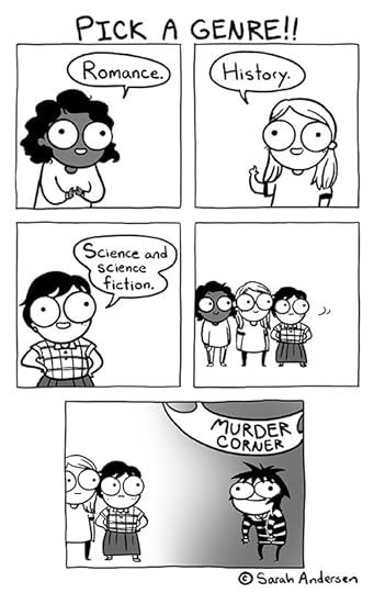 Other times he fails to repeat information when it would be really helpful. I kept being like, "Who the hell is Cindy?" every time she was mentioned, because she only comes up three or four times. It would have been really helpful if she was consistently described as "Dian's dog Cindy" for those of us with a trash memory for names.
