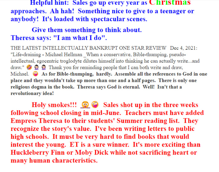 What's there to say about this that hasn't already been said? All I know is that the author to this day is still defending himself on Amazon and Twitter and calling out "trolls" who don't believe that Empress Theresa is the greatest book of all time. The man himself is unapproachable and is incapable of having a decent conversation with anyone.