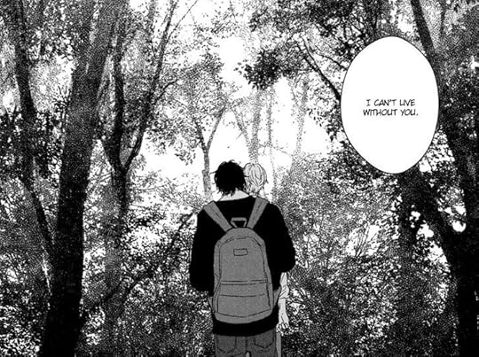 The first one is a slow, sweet romance between an older professor and his grad school assistant. They have a 17 year age gap, which I think is probably early 20s and late 30s, although that's not specified. I'm not exactly sure what Murota does; he visits the university periodically, I think just to use the library, without any guest lecturing. So he must make money purely off his research? He's described as a mycologist, but he studies fungi, insects, and other plants and environmental factors.