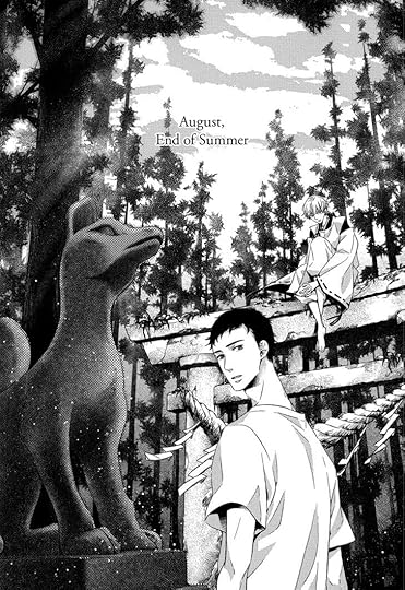The final story is about a university student who inherits his grandfather's house, and gets to know the kitsune from the shrine up the hill. Again, it's a very short story, so it's really only showing the beginning of their relationship, but it still manages to pack in a lot of feelings of nostalgia and loneliness and unexpected connection.