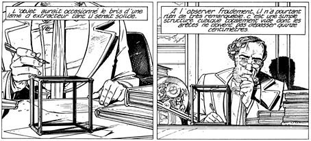 This little story, set in the city of Urbicande, totally took my by surprise. Urbicande is a city obsessed with architectural perfection, massive building, straight lines with no details, and clarity of design (think the Pyramids...) One day, while digging for a new construction, a strange cube is found, a cube so hard that it breaks the diggers (in reality, it is not really a cube, rather just the edges of an empty cube...) While the head architect ponders about the meaning of this, he notices that the cube seems to grow; this growth turns out to be exponential, and unstoppable.