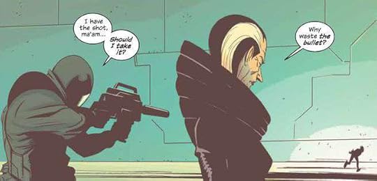 Why it gets 5 stars: Well it's why almost every volume in this series gets 5 stars from me. The story continues to be interesting and keeps on building. The art is still just fantastic. This series has some of the best art in comics, Dragotta is awesome! The action continues to be some of the best action in comics. There's a lot of action and it's all extremely well written and drawn. This series continues to be unpredictable (except for one of the character deaths in this volume, I did see that coming). The characters are very interesting and though there's a lot of them they are all very unique so even though I normally have a problem with there being a bunch of characters in one book it's still easy to follow if you're a fan of this series which is rare for a book with lots of characters... well that and they keep getting killed so... The ending... oh my gosh, that ending! I was actually sitting there saying "No! Don't end it here!" out loud because it's such a bad-a** and well done ending.