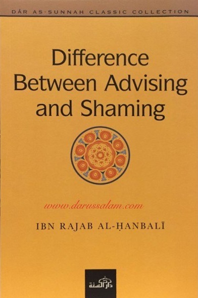 Difference Between Advising And Shaming by Ibn Rajab Al Hanbali In this monumental works of the great shaikh Ibn Rajab Al Hanbali, the author provides essentail deatil in discussing key points dealing with differences that arise between the Prople of Sunnah, and the manners and etiruette one should acquire when differing occurs. He beautifully illustrates the difference betweeen advising that is encouraged, and shaming that is not permitted. The difference between sincere advising and shaming Ibn Rajab al-Haafidh Ibn Rajab al-Hanbali, in his monograph al-Farq bain al-Naseehah w'al-Ta'eer, devotes one section to the topic of "On the Difference between advising about one's short-comings in order to return from that, and rebuking and scolding for one's sins." It reads as follows: And from this is that one would tell a man something that he disliked to his face, and if that was with the purpose of sincerely advising him, then that is good. And one of the Salaf said to his brother, "Do not advise me until you can say something to my face which I dislike. "And the salaf disliked to command good and forbid evil in this way [i.e. with shaming and re-probation], and they loved to be discrete about what went on between the enjoiner of good and the one being enjoined, for verily this is one of the signs of sincere advising. For verily it is not the purpose of the sincere adviser to broadcast the short-coming of the one whom he is advising, and verily his purpose is only to remove the corruption which has occurred in him. And as for broadcasting and manifesting the short-coming, then this is part of what Allah and His Messenger have forbidden. Allah the Exalted said: Indeed, those who like that immorality should be publicized among those who have believed will have a painful punishment in this world and the Hereafter. And Allah knows and you do not know. And if it had not been for the favor of Allah upon you and His mercy...