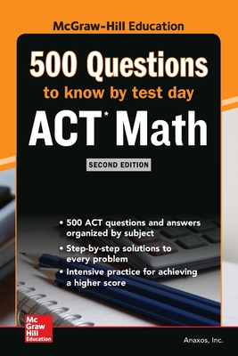 Discover 500 Ways to Achieve Your Highest Score on the ACT! The ACT is required or preferred by more colleges and universities than any other college entrance exam. This essential guide will help you sharpen your skills and study more effectively for the exam. The questions are similar to the ones featured on the ACT, so you will know what to expect on test day. Each question includes a concise, easy-to-follow explanation. Whether you have been studying all year or are doing a last-minute review, McGraw-Hill's 500 ACT Math Questions to Know by Test Da y, Second Edition will help you achieve a higher score. This edition has been updated to match the current exam. McGraw-Hill's 500 ACT Math Questions to Know by Test Day, Second Edition •500 ACT math questions•Full explanations for each question•A format parallel to the ACT exam