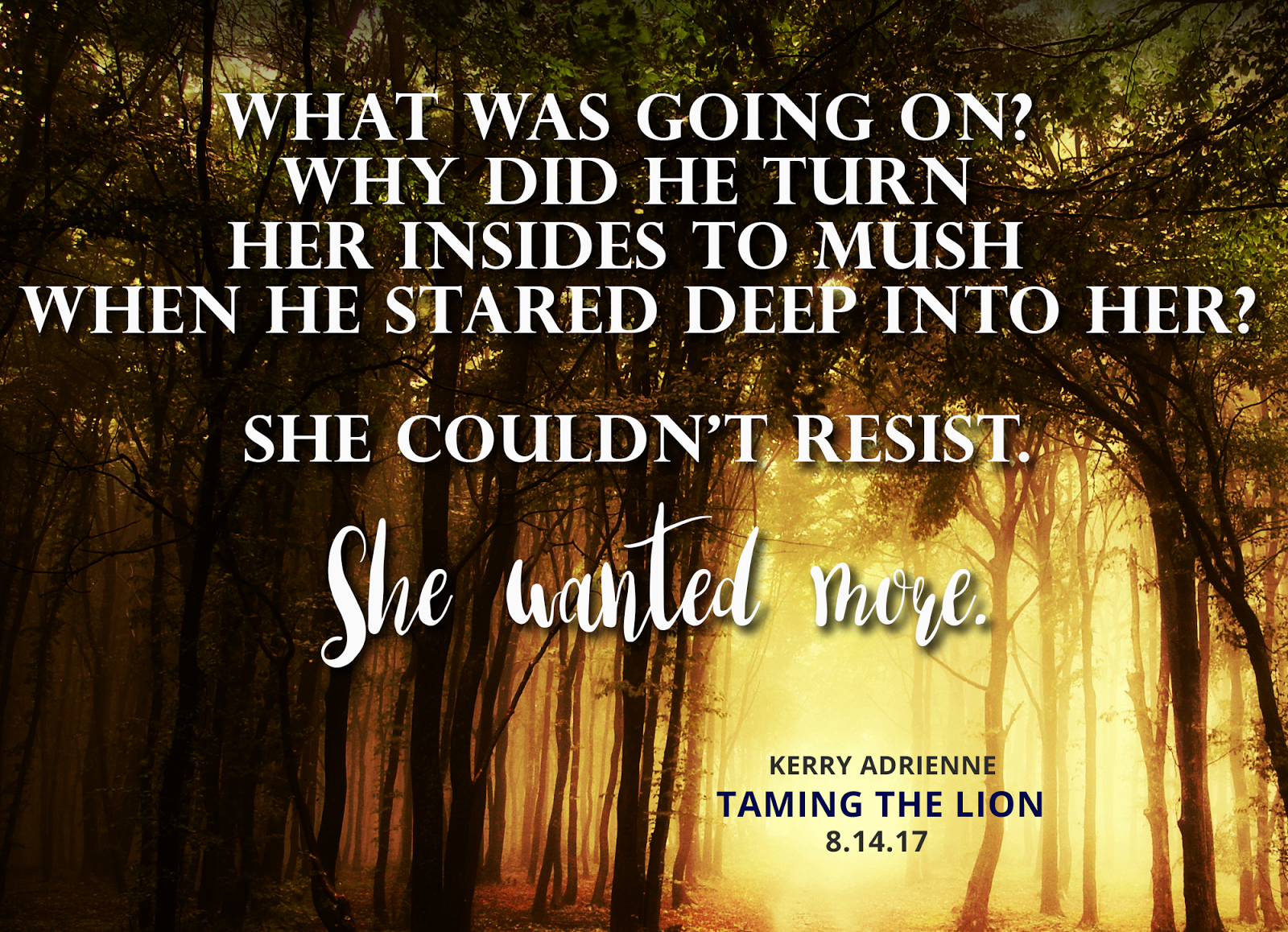 In the first two books of this series, Marco is the villain. Going into Taming the Lion I was sure he’d be unredeemable. I was wrong, Kerry Adrienne did a great job at making me want to like Marco. She wrote him at his absolute lowest point, hurt and dying, and then put Alicia straight on this path. He was so desperate that I couldn’t help wanting to see him get better in order to see how he’d save the entire shifter population of Deep Creek.