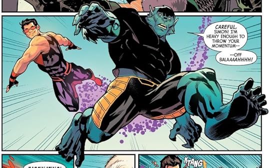 The plots are dull: one big fight with Graviton, and he's CRAAAAZY, one big fight Juggernaut and he's MAAAD. Fortunately, the team gets better characterization, and that's what holds the comic together. In fact, the team gets quite good characterization, especially Rogue who is wonderful in her role as team leader. But Wanda, Pietro, and Johnny are all strong too, with fun guest appearances by the Beast and Wonder Man. Yeah, there's some Inhuman woman too; no one cared about her, though Zub tries really, really hard.