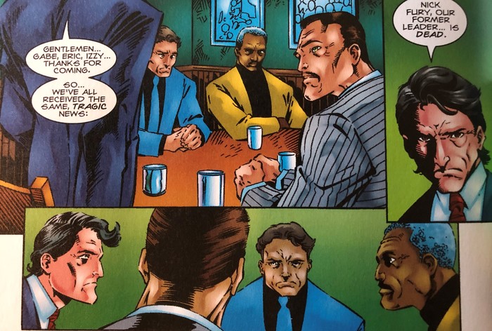 Começamos com um cross-over do Hulk, Hank Pym e Vespa contra um descendente do Loki, nada demais, nem de menos. Depois temos um Hulk e Venom que, como toda história do Venom, o Protetor Letal, é uma bosta. Temos uma confusão com a mitologia nórdica e a queda do Panteão em duas histórias que parecem meio "Deus Ex Machina" e eu não curti muito; aparentemente o Agamenon é um dos filhos do Loki e, volta e meia, ele destrói tudo só para construir tudo de novo. Vai entender, né? Com a queda do Panteão, depois de alguma confusão num hospital qualquer, Hulk e Betty fogem para a Florida, o Gary Frank sai do título e, quando com muita raiva, o Hulk vira um Banner fracote e nervosinho. Agora com os lápis agressivos e sujos do Liam Sharp, temos algumas histórias na Flórida e um dos mais legais confrontos entre o Hulk e o Abominável em que, ainda que físicamente o Hulk ganhe, ele acaba perdendo. E no meio de tudo isso, há algumas edições em que o Peter David fala sobre as questões da época; temos a triste história da morte do Jim Wilson - parceirinho da fase Trimpe -, agora com AIDS em estágio terminal, e também um história sobre aborto. Para fechar, colocam o selinho Marvel Edge na capa, um crossover porco com o Justiceiro e a morte do Nick Fury. Nada de bom sai do selinho Marvel Edge.
