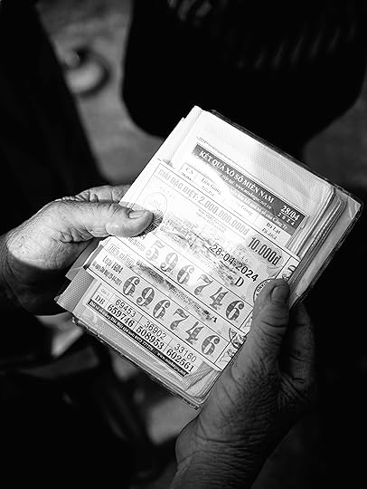 ارتسمت على وجهه ابتسامة عريضة لا معنى لها كأنه طفل وقع بصره فجأة على شيء يلمع. تبسمت زوجته أيضا. كانت هي الأخرى سعيدة لأنه ذكر التسلسل وفعل خيرا لأنه لم يحاول أن يكتشف رقم البطاقة الرابحة، فلا ضير أن يحلم المرء لبعض الوقت ويملؤه الأمل بثروة محتملة.
