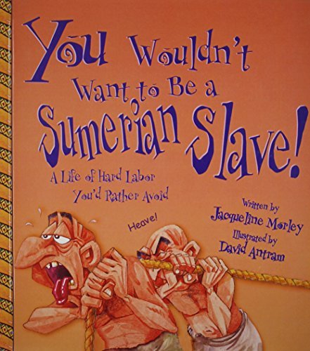 Would you want to be a sumerian slave? The book you wouldn’t want to be a sumerian slave written by Jacqueline Morley is about a family of farmers who have to sell their son for money. Once he is sold the owners find no use for him so he is sold again. At his new job their city is attacked and he is arrested and now a slave. In the rest of the book you find out want being a slave at that time meant -it usually means hard work and labor for life-. I know that I definitely wouldn’t want to be a sumerian slave. I would rate this book 4 ½ stars because the book really hooked me in right away and got me wishing the book was longer. This book was really nicely organized and the pictures helped me read this a lot easier and visualize everything. The only reason why I took the half star off was because in the middle it got dull but sprang back up. I think that anyone wanting to learn about the topic or interested would really enjoy this book.