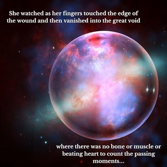 “Blackness. A black crescent moon, stark on her pale skin. Not the black of a tattoo or bruise, the blackness of a shadow, a starless patch of night sky. Blackness that had depth. That breathed.”