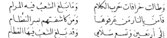وقال الرعاديد: قومٌ رعاعٌ مجانينُ، تجري وراء الخيال وقال المناجيدُ: قومٌ كِرامٌ صَناديدُ، من عظماء الرِّجال وقال الفرنسيسُ: بئسَ المصير إذا القومُ لم يُمحَقوا بالنكال وقال الألى ناصروا حزبنا سَنَقْضِي على لعنةِ الاحتلال وقال الذي خلَّدوا شِعْرهُ فدَاءُ الجزائر، رُوحي ومَالي
