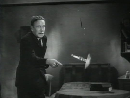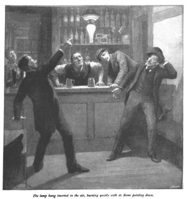 At the bar, there’s a discussion going on…which touches on “miracles”. Most of them don’t believe it. Until Mr. F tries his move on the lamp (using his “willpower”)…and manages to get it suspended in the air, levitating, upside down.