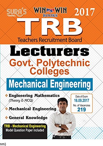 Buy Now Complete Study Material of TRB Lecturers ( Mechanical Engineering ) Exam (Govt Polytechnic Colleges ) 2017 at Sura Books. CONTENTS Lecturers (Engineering / Non Engineering) in Govt. Polytechnic Colleges Qualification & Scheme of Exam ☆ Engineering mathematics ☆ Explanatory Theory ☆ MCQA MECHANICAL Engineering 1. Thermodynamics 2. Heat and transfer. etc 3. Fluid mechanics 4. Fluid Machinery and Steam Generators 5. Theory of Machines 6. Machine design 7. Strength of Materials 8. Engineering Material 9. Production Engineering 10. Industrial engineering General Knowlege