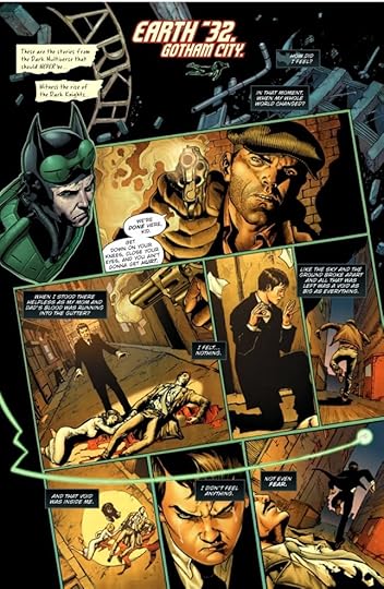 Very creepy version of Batman/Green Lantern that has no problem killing! After his parents are murdered young Bruce Wayne is given a power ring; and the first thing he does is kill the robber who murdered his parents! Really like the concept of hero/villain 'mashups' that exist in the multiverse - will follow this character as he evolves!