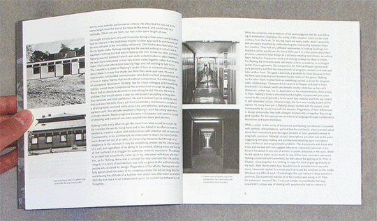 Endangered Architecture: The Work of Bernt Nyberg takes a look at a body of work nearly lost to the passage of time. Nyberg's work has almost all been demolished or altered. In fact, this catalogue indicates that only 2 of the depicted 16 built works, the bulk of his output, haven't succumbed to one of those two fates. This modest quantity of output is explained by Nyberg's exacting standards, disinterest in producing commercially-motivated work, and his premature death at 51.