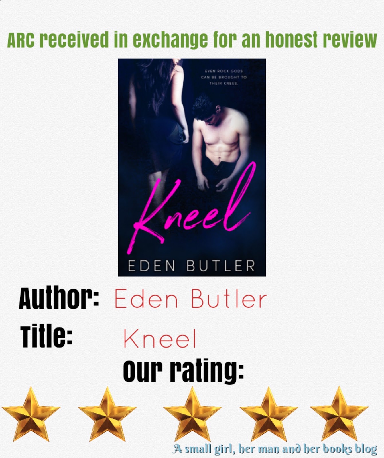 Well Eden Butler has certainly raised the bar with KNEEL. This book was absolutely brilliant. I was unable to put it down, so it travelled everywhere with me. It is a rockstar, second chance at love story, that will hit you with a dart right on the bullseye of your heart.