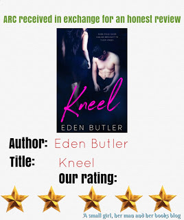I had mistaken Eden Butler for Jenna Galicki - yes, i know, the names are totally different but it was the stories (the writing style and how it flowed) that felt similar when i read the blurb and boy was i wrong. Both authors have captivating stories, but Kneel drew me in for a few reasons: the cover, the title and the blurb. I'll admit that through much of the book i wondered why the author chose the title but the more we learned about the dynamic between Iris and Jaimie, that's when it clicked.