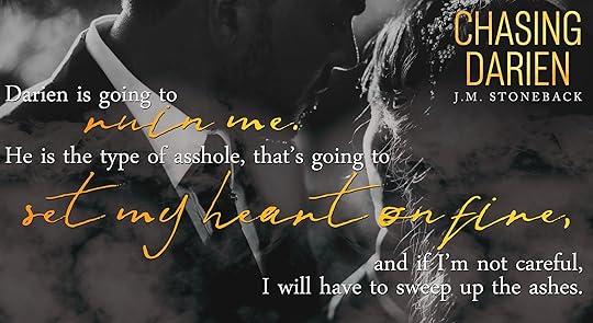 Chasing Darien is my first read by J.M. Stoneback. It was a good fun read with the intense chemistry between Darien and Alana. At times it was overly crass for my liking, and the ending felt a bit rushed but overall an enjoyable read.