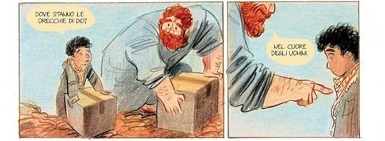 Dico subito che di miele qua dentro ce ne sono dosi massicce, ma nonostante questo quattro stelline ci stanno tutte, e abbondanti. Perché il trasporto emotivo è stato davvero intenso (non avrei mai immaginato di piangere leggendo un fumetto, e piangere non per le vicende dei soli protagonisti, ma per quelle dell’umanità intera), e soprattutto i temi trattati sono importanti e profondi: e anche molteplici, perché nello spazio di una sola storia ne vengono toccati davvero tanti (dalla situazione in Siria, ai barconi di immigrati, al rapporto genitori-figli, alla diversità, l’accoglienza, il dialogo interreligioso…) senza forzature o esondazioni di trame secondarie.