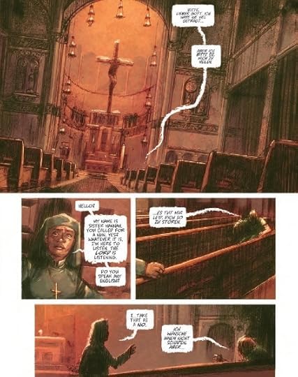Average color artwork,an image freebie. Slow moving and atmospheric. The first scene is un pleasent. The researcher is unsavory. The nun is long suffering.