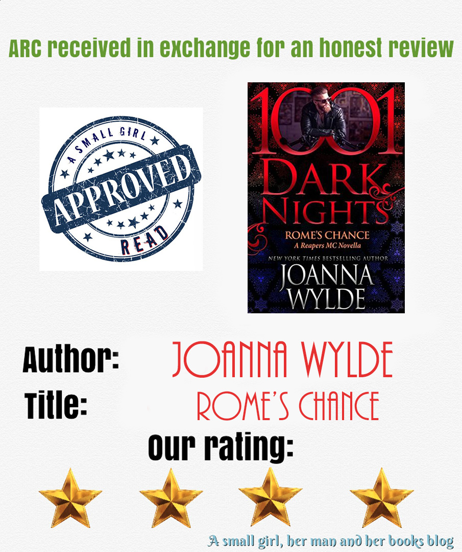 "I’m not gonna let you dump me until we’ve had a real chance. Sooner or later, you’ll be ready to live again. I can wait.”Overall, Rome's Chance will appeal to readers who love a good MC Romance. If you are looking for a taste of the Reapers MC then look no further. I definitely look forward to more Reaper action to come!