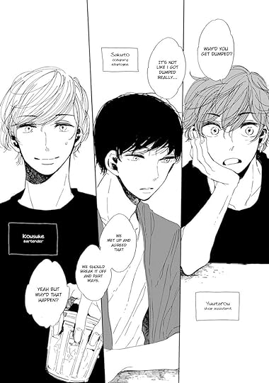 Un manga sobre tres amics que es coneixen des de la universitat, les seves vides amoroses i com gestionen els seus sentiments. Un és gai, propietari d'un bar i té un pretendent artista de 18 anys; un altre és bi, treballa en una oficina i té un crush amb el seu supervisor (i resulta que és recíproc, però aii l'homofòbia interioritzada) i l'últim és hetero i ha tingut sempre problemes per encaixar per això valora tant els seus amics. Crec que amb el ventall de personatges i les mogudes de la trama podia donar molt més de si, m'ha deixat molt freda amb la resolució de totes les parelles sense ni un trist petó... :/