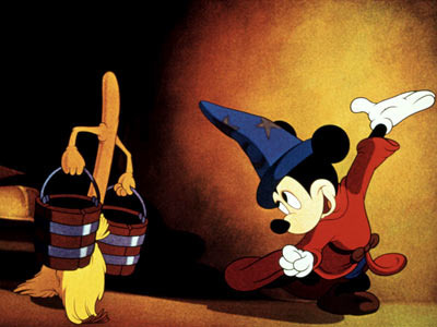 While the sorcerer is away, Mickey attempts to use magic to do his chores.