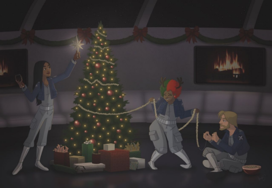 This was a really fun story and a great addition to the Musketeer Space universe. I personally think it's better to read it after the main book [after all, that's how it was published], but also I understand that the main book is very long and this is technically a prequel so you could read it first to get a feel for the universe and it isn't really going to spoil you for anything. I really liked this story and it's nice to get some more background on the *three* musketeers, but D'Artagnan has always kind of been my favorite [even though they are literally all my favorite and I will change my mind every 30 seconds, as is my right] so the group definitely does feel incomplete in a small way without her. Still, super fun and I like the detail that the author has put into making up the different future holidays and traditions.
