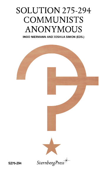 Solution 275–294: Communists Anonymous is a document of some imageries of communism and a testament to the current predicament of our political imagination. Atomized, privatized, and deprived of any infrastructure for solidarity—without any internationalist project, with moralizations compensating for the disappearance of political organization, with micro-politics replacing macro-politics—communists can only be anonymous in this world of ours. Edited by writer Ingo Niermann and curator Joshua Simon, this collection of essays and stories—written from the fields of art, literature, law, philosophy, activism, design, and science—proposes resolutions to current social contradictions, covering topics such as bacteria, bliss, immortality, queerness, interculturality, poetry, transportation, childhood and motherhood, and all-encompassing sensual love.