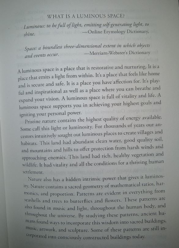 In the opening paragraphs of her work, the author elaborates on luminous spaces, and the role played by each one of the important elements.