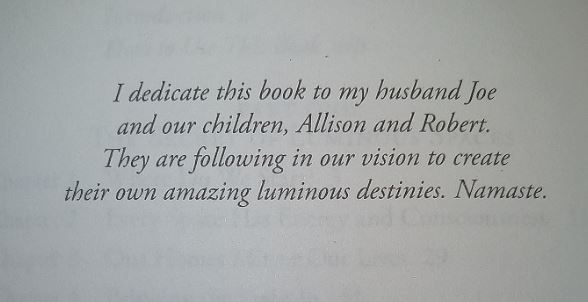 In the dedicatory, the author mentions her husband and children, and salutes them in Hindi.