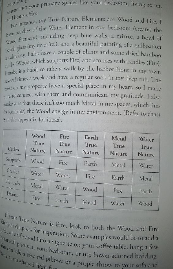 Maureen even goes so far as to get into what makes them ying or yang as well as how biophilic design blends well with and has aspects of feng shui in it. She even gives a helpful self assessment portion in the back by asking you questions that help you critically think and understand which elements you best relate to and how you can use that information to help you home and office spaces work for you and your intended purposes!