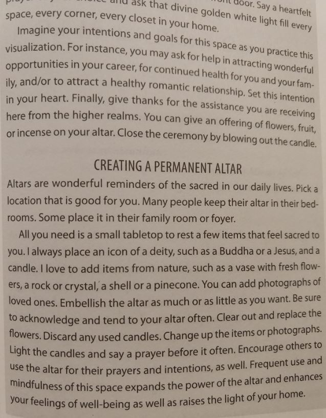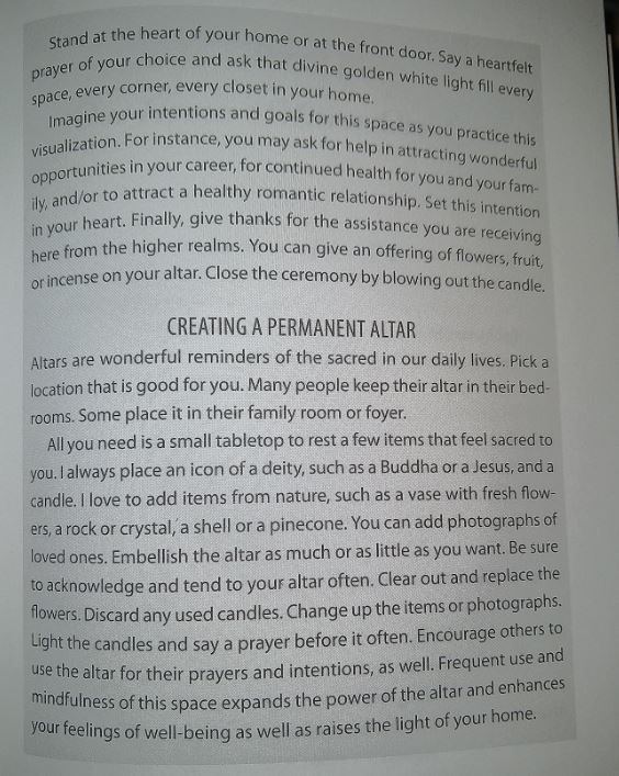 Here a suggestion I found interesting: Creating a permanent altar to be always reminded about the sacred in our daily lives (I really liked this one, and will create an altar myself)
