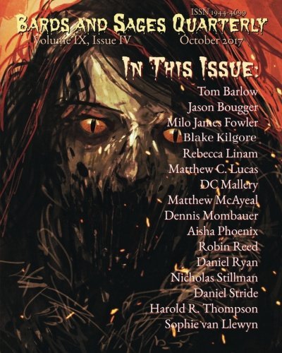 With each issue of the Bards and Sages Quarterly, we strive to bring fans of speculative fiction an engaging and entertaining variety of stories from new and established authors in the horror, fantasy, and science fiction genres. In this issue: stories by Tom Barlow, Jason Bougger, Milo James Fowler, Blake Kilgore, Rebecca Linam, Matthew C. Lucas, DC Mallery, Matthew McAyeal, Dennis Mombauer, Aisha Phoenix, Robin Reed, Daniel Ryan, Nicholas Stillman, Daniel Stride, Harold R. Thompson, and Sophie van Llewyn.