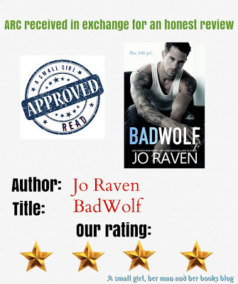 It's been a long journey since the first day that I had venture into the book world and I regret nothing. Lol. On the contrary I lived and loved every second of it and being a greedy girl I always want more. There are genres that I won't venture out but there are others that I can't start fast enough. In this odyssey I've meet several authors, unfortunately not in person yet, that made me fall in love with books and this lady is one of them. Jo Raven is the bomb. Between love stories, to steamy stories, to drama and suspense she's there. Each book it's different but always an engaging story. Her writing is hot, simple yet pretty detailed, wild, forbidden and so much more. Bad Wolf is her latest release and don't let the tittle suggest a paranormal story because you will be surprised. This is a book that you can't miss. Have you read Caveman, Undone or Mancave? If you have you know why I'm so happy, if you haven't I totally advise you to read them all in order because despite they are all standalones you need to know the characters from the beginning. This book tells the stories of Jarett and Gigi. Jarett has a troubled soul. His life hasn't been easy and it left marks on him. His birth parents were criminals killed by the police and he end up adopted by a couple with an older son. He's a very reserved guy with a soft spot for only one girl. Years passed and now they meet again but he's even darker now. Gigi is a sweet girl but a wild one as well. She used to live with her big sister, her mom and her younger brother. She's stubborn and knows what she wants. When a new boy moved to a house near her own she was attracted to him but he was always so quiet. When her big sis moved to a new town with her husband, they moved too and she lost contact with the new boy. Until one day... Jesus... Could this book be even more intense... The plot is breathtaking, super engaging, sweet and wild at the same time. The interaction between the characters is beautiful, raw with so much doubts and conflicts... And it's amazing the chemistry they share. The way the story progressed left me anxious, jumpy, mad, happy, hot... All these emotions at the same time it was overwhelming. We all know that life isn't easy or fair but when we have a glimpse of happiness we need to grab it with both hands and can't let it slip away. I knew that this book would be this amazing and I'm so glad for the chance to read it. And of course the hot scenes will drive you crazy with desire and in need of a very cold shower... It's so great to keep having news from the other characters from this series. Jo you're amazing and this series keeps getting better and better. I'm so anxious to have Merc's story as well and Sidney. When will that be? Soon... I hope it's soon. I voluntarily reviewed an Advance Reader Copy of this book.