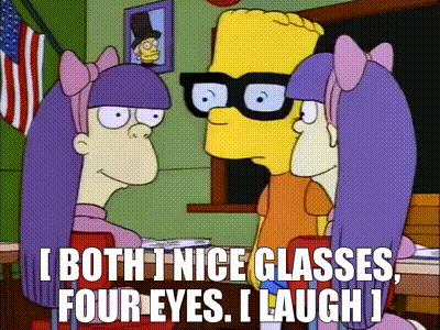 I always wondered why Ms. Coleman put the glasses-wearers at the front of the class. Couldn't they see better since they were wearing glasses? But I think it may have been to help limit the number of times per day Karen had to change her glasses. Karen should have gotten one pair of bifocals instead of two pairs of glasses. But then again, she is a Two-Two. I hated how much Karen and her fellow classmate were teased for needing glasses. I wished the book had taken a positive view of glasses from the beginning.