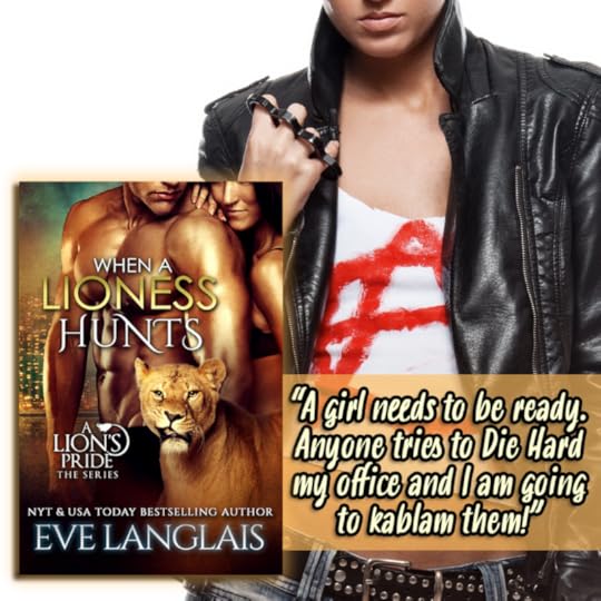 WHEN A LIONESS HUNTS is the 8th book in Eve Langlais' LION'S PRIDE series. Ooh this was one engrossing, humorous and captivating journey. This series keeps getting better and better with each book. Eve Langlais did an excellent job! 5++++