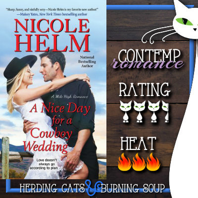 A Nice Day for a Cowboy Wedding is the fourth book in Nicole Helm's Mile High Romance series, but only the second book in the series that I've read, and I'm happy to say I liked this one more than the first, and it gets 4 stars from this reader.