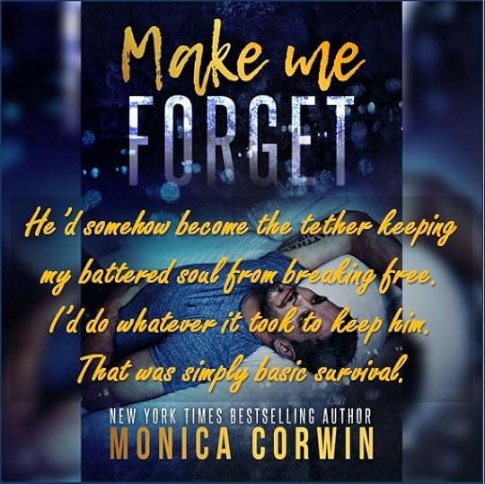 This is my first book by Monica Corwin and she did an amazing job. Make Me Forget is a phenomenal book that will touch your heart with all its emotions and incredible characters.