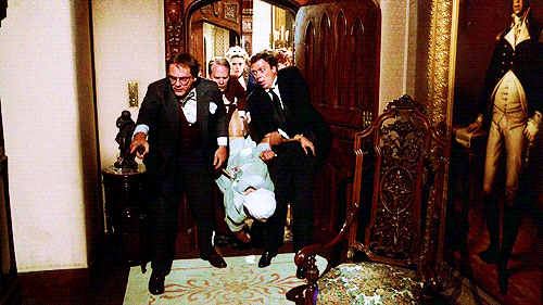 The setting was like Clue or something. They got stuck in an old mansion with a bunch of people for a few days when the weather takes out the only bridge to the outside world. Someone dies and then all hell breaks loose.