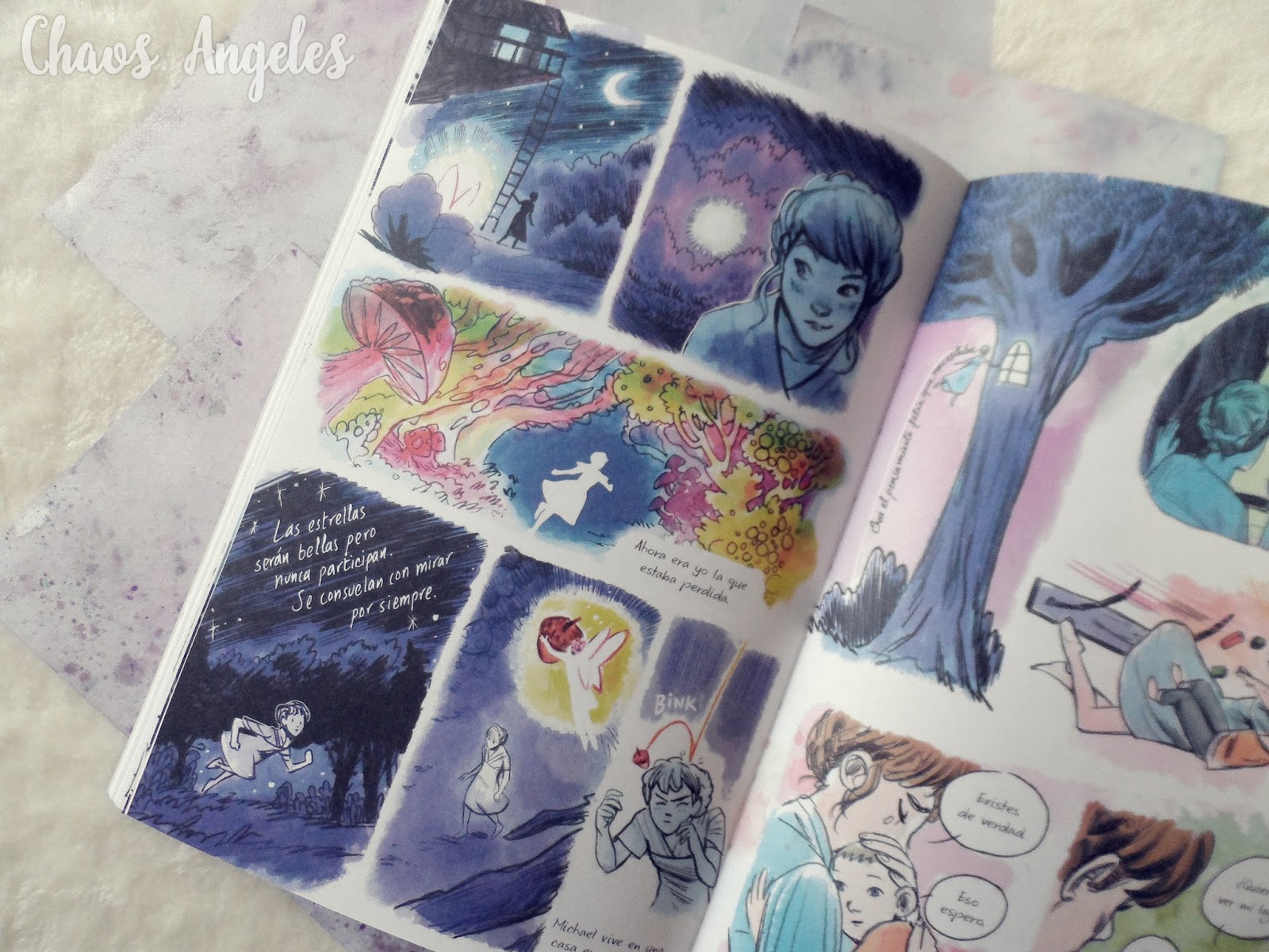 Llevo más de una semana intentando hacer la reseña de esta novela gráfica y les juro que por más que lo intento no me sale. La razón es que es una historia muy hermosa pero muy sencilla y pequeña y de verdad me cuesta decirles de que va sin echarles a perder la historia. Así que al final decidí llenarnos de fotos de esta preciosa historia.