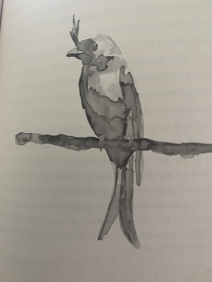 Ein schönes Buch in ruhigen Worten, wozu auch die anmutigen Vogelzeichnungen beitragen. Auch der feste Umschlag sollte erwähnt werden, der ebenfalls mit diesen Zeichnungen geschmückt ist. Dennoch muss ich zwei Dinge bemängeln: Mich störten die vielen Ebenen, eine oder zwei weniger hätte ich nicht vermisst, im Gegenteil. Und müssen die Abschnitte immer auf einer neuen Seite beginnen? Man wäre mit gut 50 Seiten weniger ausgekommen, doch hätte man dafür vielleicht keine zwanzig Euro verlangen können.