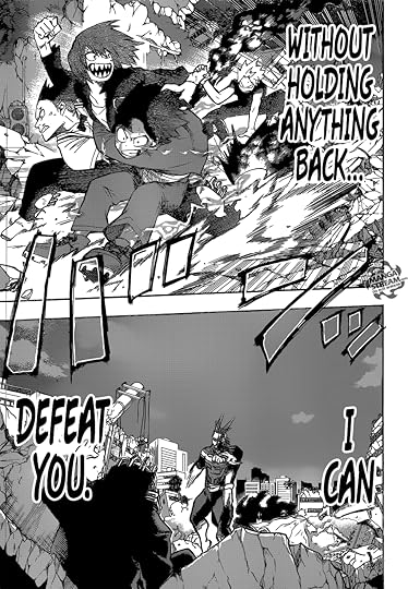Such a weird volume. The first half was the fight between All Might and All For One, and it was kinda meh. I don't think Horikoshi is at the level where he can write these big showdowns convincingly. The action is jumbled, the dialogue is confusing and usually pointless, and the pathos level is so over the top that it's impossible to take these characters seriously.