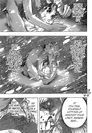 The higher the stakes in this manga get, the lower goes my interest and attention. Epic battles with the greatest hero and the greatest villain around? Ehh. The fight itself was all right and I could feel just how much greater these two were than anyone else anywhere, but on the whole it was just people beating up one another like in the shonen usually. I don't like All For One, I don't like Shigaraki - or rather, I don't love to hate them - and I don't care about their plans to rule or destroy the world just because they're nihilistic or sad. As of this writing, the current arc involves Shigaraki having turned into this kind of an all-destroying superman and I just can't wait for it to be done with so that we can get to the good stuff.