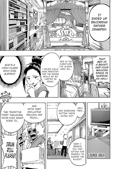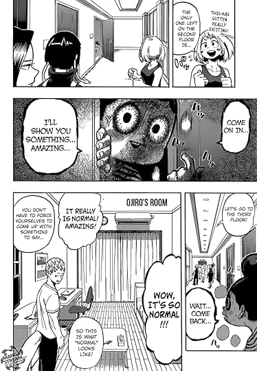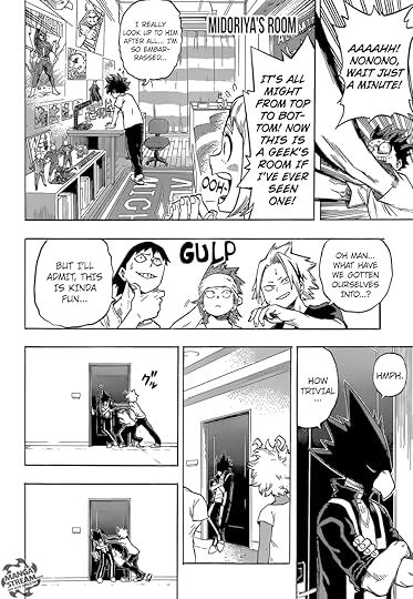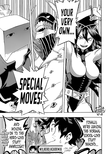 Fortunately, the aftermath of this fight was much better. Some character development for All Might was very nice to see, and I liked the return to a lighter, more upbeat tone so much that I didn't even mind two entire chapters dedicated exclusively to exploring all of the students' rooms in the new dorm (which admittedly was VERY silly and didn't add anything to the story).