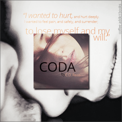 Coda is a wonderful read – it’s as fresh and perverse as ever, an entrancingly erotic bedtime story to stalk your dreams long after you’ve finished it. CD Reiss knows how to seduce her readership and the narrative is packed to the rafters with her usual zingers and sharp observations that single her out from a lot of other authors in this genre. She has an uncanny knack of going beneath her words and eking out the true meaning of what is going on with her keen eye and sharp, no bullshit sense. It’s what makes her style so wholly intoxicating and addictive.
