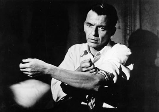 were the other side of the billboard which gave each American his commandments, which they had failed all down the line. They could not afford the liquor or tobacco that gave them distinction & their lives had long gone stale. They had emerged from the wrong side of the billboards, gave off a certain jailhouse odor & even if native-born, no longer felt a part of America.Most prominent among the outcasts is Francis Majcinek, cast as "Frankie Machine" & it is said that the hustler's god watched over him. He is hooked on morphine & married to Sophie, someone who courses about a 2nd floor apartment over a saloon in a wheelchair, relegated to an invalid state via a drunken crash with Frankie behind the wheel.